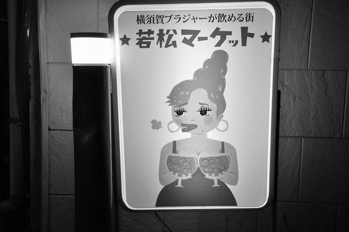 この一帯は、横須賀市若松町のために、「若松商店街」よりはおしゃれに! そう、『若松マーケット』にと。 実態は数十軒の飲み屋の集結場所である。