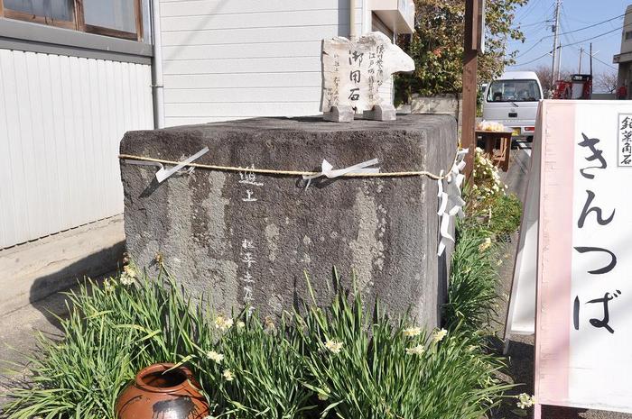 当時、栗田さんの先祖は「きんつば」屋、その店先に置かれた畳石は、江戸城も完成した為、畳石は不要となり、きんつば屋の預かり品となったとか。