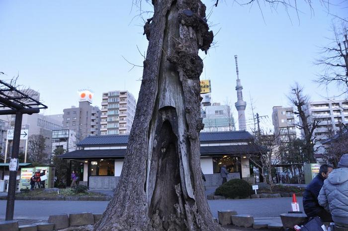 宝蔵門の右手の境内には、被災したイチョウの木が6本有ります。
