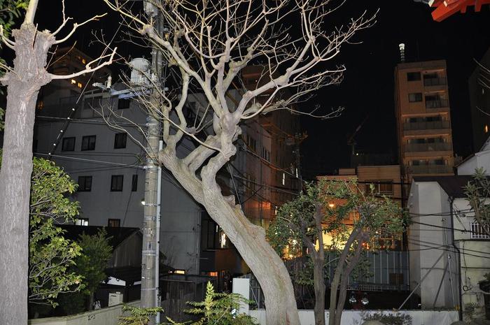 木の名前は「アカメガシワ」・・・3月の空襲時、炎に巻かれて、木の中心部が炭化したままの後遺症が残っています。 |