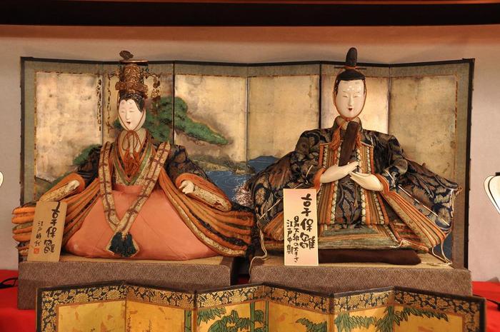 東は段飾りが主流で、丸屋の大木平蔵(丸平)の七段飾りが展示され、西は御殿飾りが主流で、檜皮ぶき御殿や源氏枠御殿や静岡の御殿が並んでいます。