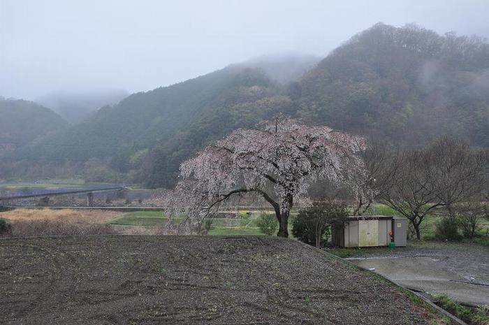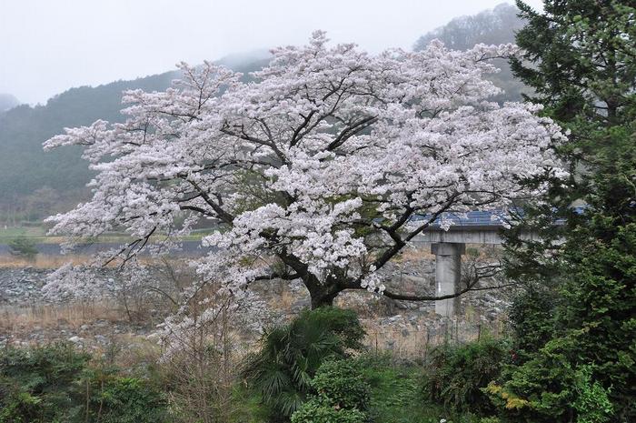 個人宅(用沢403番地)の記念樹らしく、宅地の隅に植樹されたもので、根元を見ると結構、桜の木の育つ条件が厳しい。 また、左の方角100メートルほどの場所(土木会社の敷地を通り抜け)で、河原に花壇を造り、染井吉野の一本桜が有った。