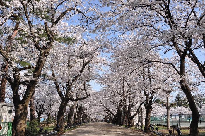 高田城の跡地に陸軍第十三師団の入城を記念して、明治42年(1909)に、染井吉野が植樹されているので、樹齢は100年を超えている桜の並木道です。