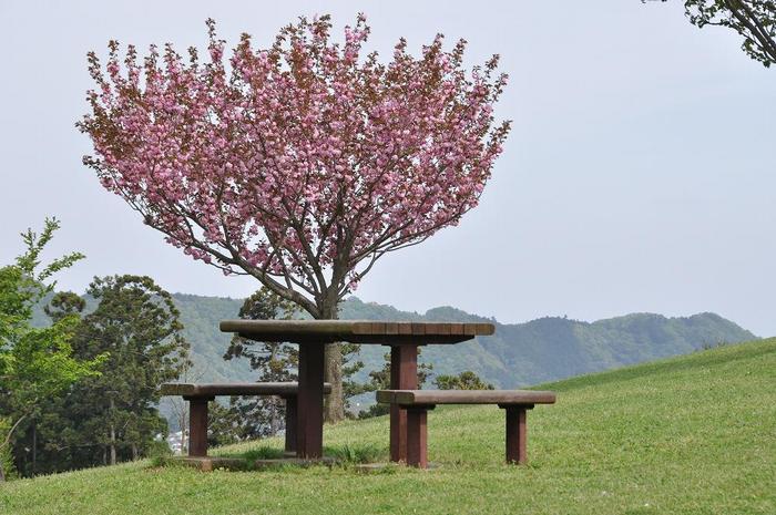 「風の丘」に八重桜が有ったが、天空に一本桜・・・絵になります。