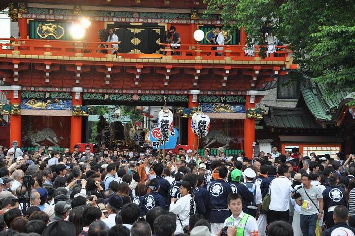 神田祭 拝殿の階段から宮入の様子を撮影 |
