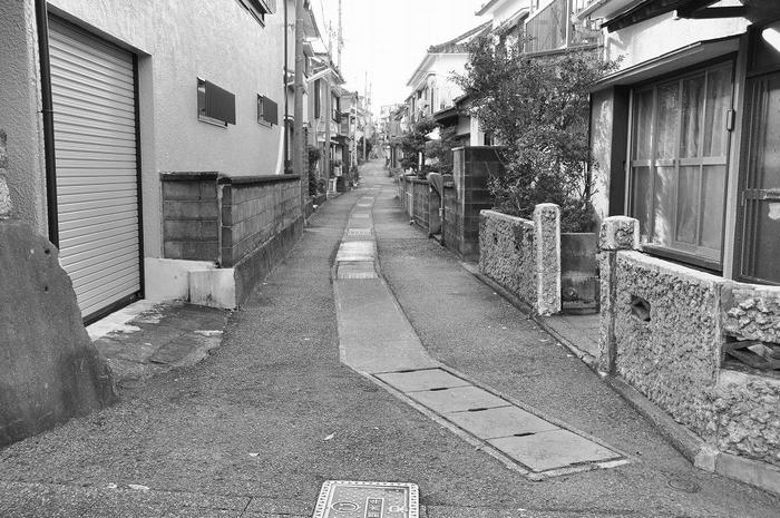 昭和の初期までの漁村の街並みは、リヤカーと人間が歩ければ良いので、道幅は狭いままです。