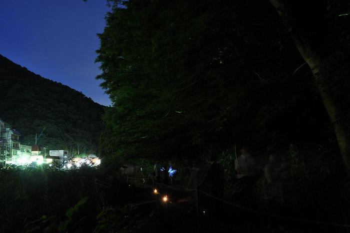 借景に箱根湯本のホテル街と、川を選んで見たものの、肝心のホタルの光跡が撮影できず、難易度の高いほたる公園だった。