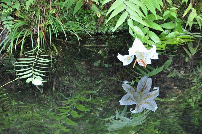 境内の池にミラー返しされたヤマユリも一服の絵の様でした。