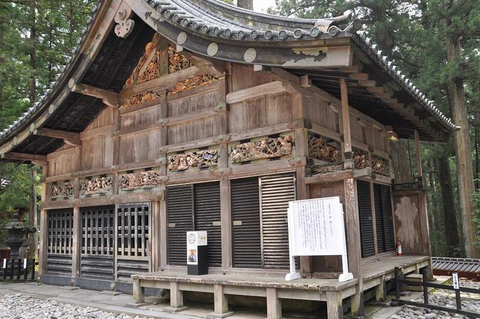 昔から猿が馬を守るとされているところから、長押上には猿の彫刻が8面あり、人間の一生が風刺されています。