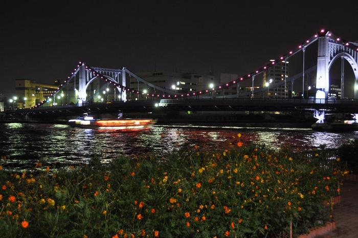 ライトアップは、橋のイメージが先行しており、女性美を意識してか、ピンク色です。