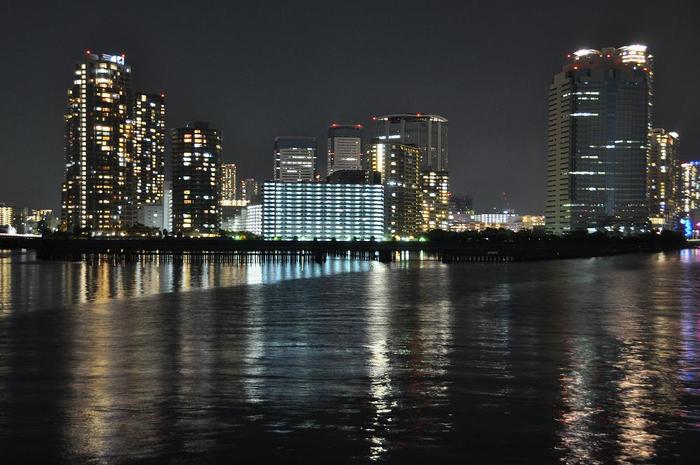 ちなみに、下流側を見ると、豊洲地区、有明地区、お台場地区は、2020年のオリンピックを控え、高層ビルの建設ラッシュです。 |