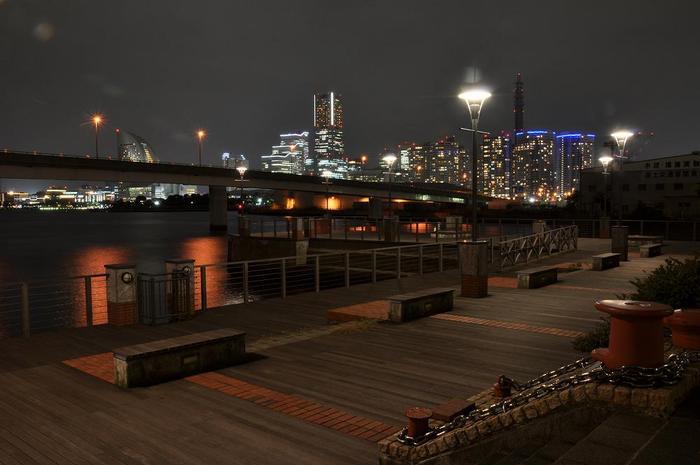 この一帯は、天然温泉の「INSPA横浜」さんの私有地でありながら共同利用施設エリアとなっており、一般の方でも訪問可能で、夜景鑑賞を楽しむことができます。ベンチも設置され、街灯も完備された『ウッドデッキ』は、夜景スポットとしては、抜群の雰囲気を持った穴場です。