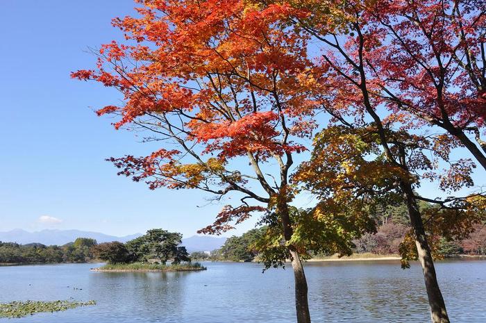 私は紅葉の時期に歩いたのですが、湖面に鮮やかな色を映す紅葉と那須連峰を借景とした眺めはまさに、スケールの大きな絶景でした。 |