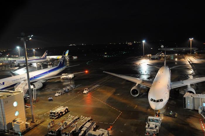 空港内の照明の明るさと、暗闇の大空へと飛び立つ飛行機の光跡を追っ駆ける難しさを痛感しました。