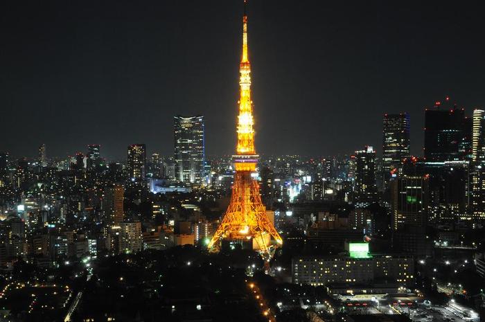 ここからの夜景は、東京タワーや六本木ヒルズ、レインボーブリッジ、東京ミッドタウン、新宿副都心、恵比寿ガーデンプレイスなどを眺めることが出来ますが、特に、東京タワーを間近に眺めることができ、「東京タワーを最も美しく眺められる展望台」としても有名です。今回の撮影目的は・・・・、じつは「東京タワーの大展望台2階の窓に3D映像」が投射されているので、外からはどの様に見えるのかを確かめるつもりでした。 |