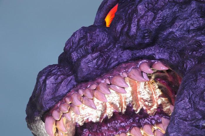 唸り声を出し、火を吹くゴジラ