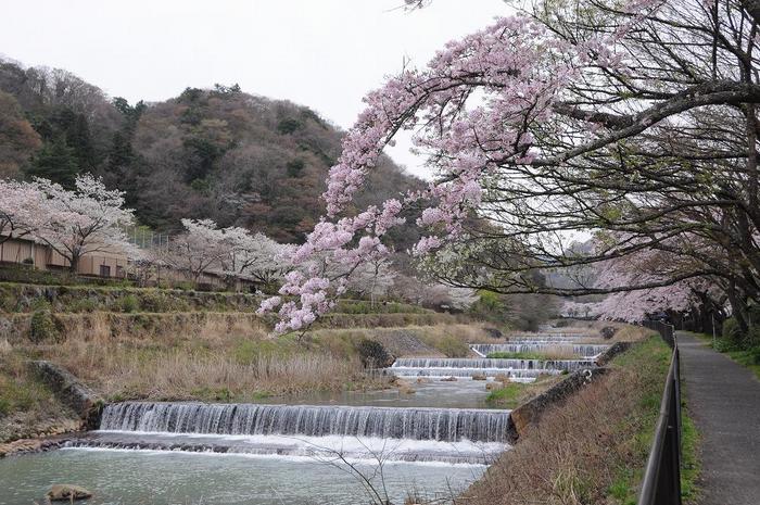 早川沿いの堤に、約600メートルにわたり約120本のソメイヨシノの桜並木が続き、小さなダムを流れ落ちる川のせせらぎと共に桜並木が楽しめます。もう一つが、日帰り温泉の「勘太郎の湯」へ通じる「さくらばし」から見る温泉会館と国道138号線土手の間の100本のシダレザクラが特に目を引きます。