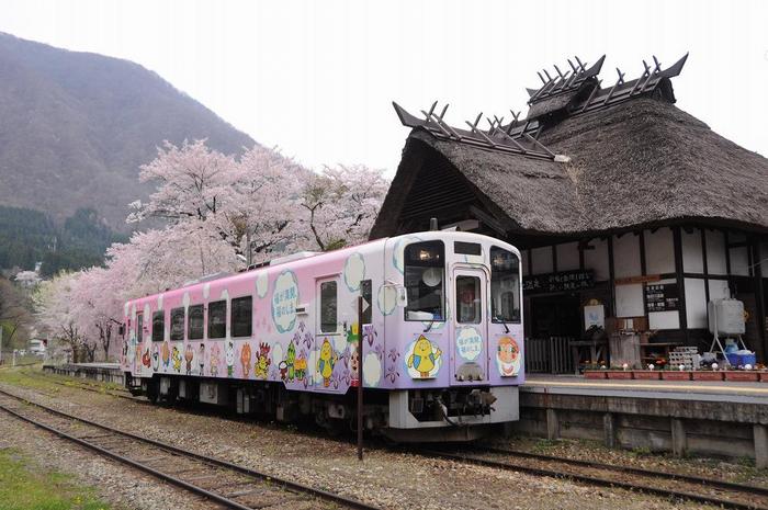 日本で唯一の茅葺き屋根の駅舎で、東北の駅百選に選ばれており、駅舎の風情を盛り上げるという。この景色を撮影するのに、12,780円掛かったが・・・良かったよ。