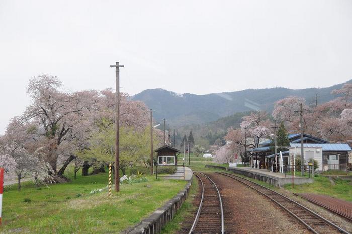 芦ノ牧温泉駅の桜は、下の写真にあるように数十本もあるソメイヨシノが4月10日前後に見頃となり、「桜まつり」も開かれるそうです。