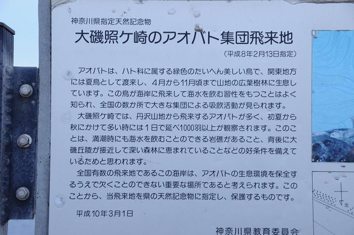 大磯町の公式ページでアオバトの画像をご覧下さい。 ⇒ クリック照ヶ崎海岸は「大磯照ヶ崎のアオバト集団飛来地」として神奈川県の天然記念物に指定されています。