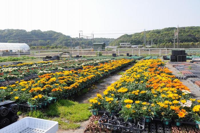 98番・柳田園芸のポット鉢出荷前の畑、ご主人がいたので、温室の中も取材した。
