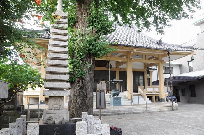 正蔵院の境内に入ると、本堂の手前左手に被災したイチョウの樹が有り、樹の下には「戦没者慰霊」と「平和祈願の平和塔」が有りました。