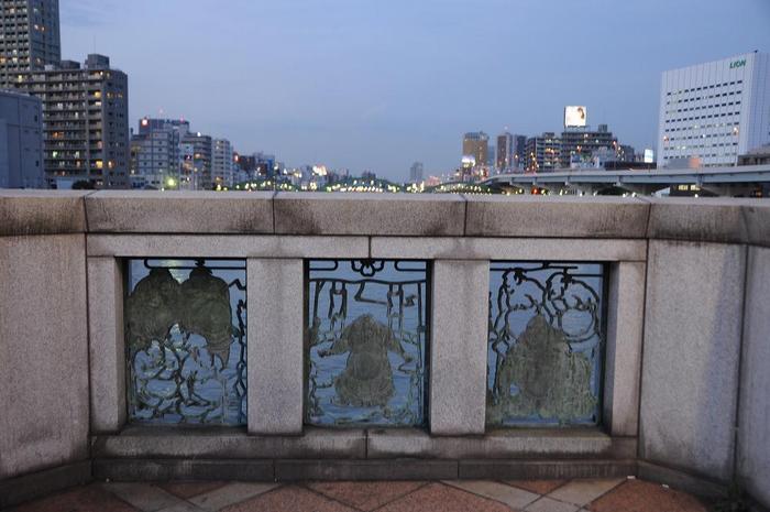 その為か、橋のバルコニーや高欄には、渡し舟や土俵入りの透かし彫りが有ります。