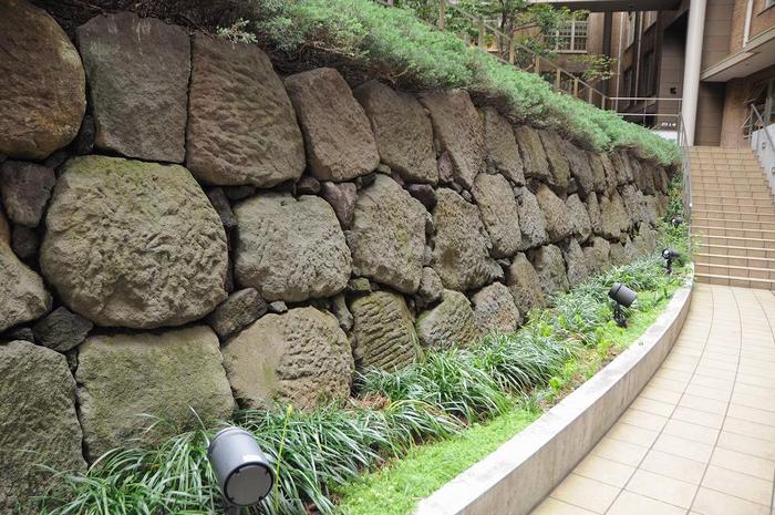 地下鉄工事や、ビルの建て替えなどにより、数ヵ所から石垣の一部が発見され、遺構として展示されています。 |