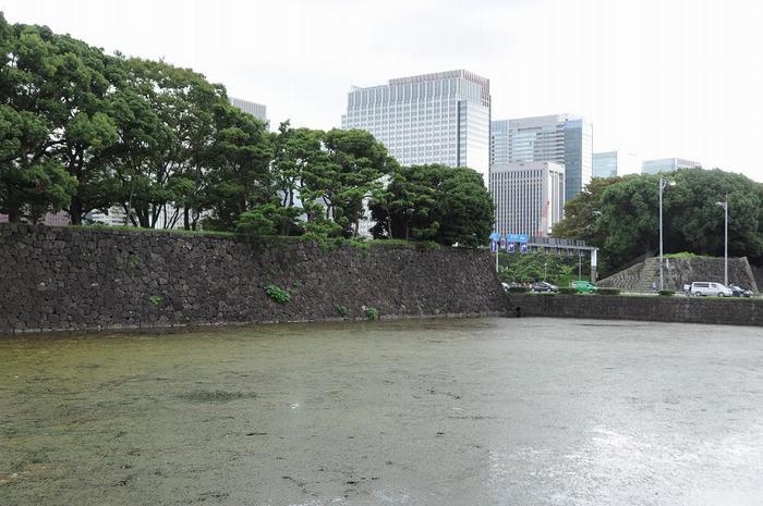 桜田門の土橋の石垣、祝田橋の石垣、日比谷濠のお堀の外側の石垣は、西洋式の石積み方式を採用したものです。 |