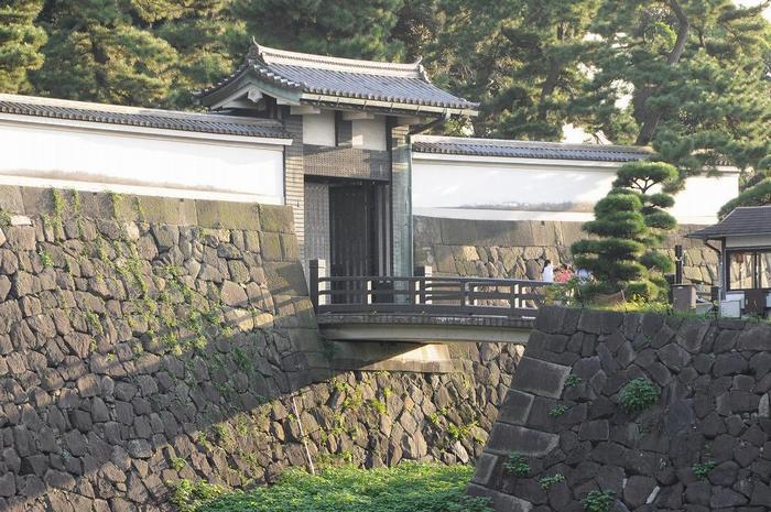 江戸時代には、5メートルほどの木製の橋で、高麗門の軒下に4つの金具が有り、土橋側の橋端を引っぱりあげて(橋の片方を跳ね上げて、渡らせない)いた事から、『北桔橋(きたはねばし)』と呼ばれていました。現在は、鉄筋コンクリート製で、欄干はシンプルな鋼製、歩道面はカラータイル張りとなり、高麗門と土橋をつないだままになっています。