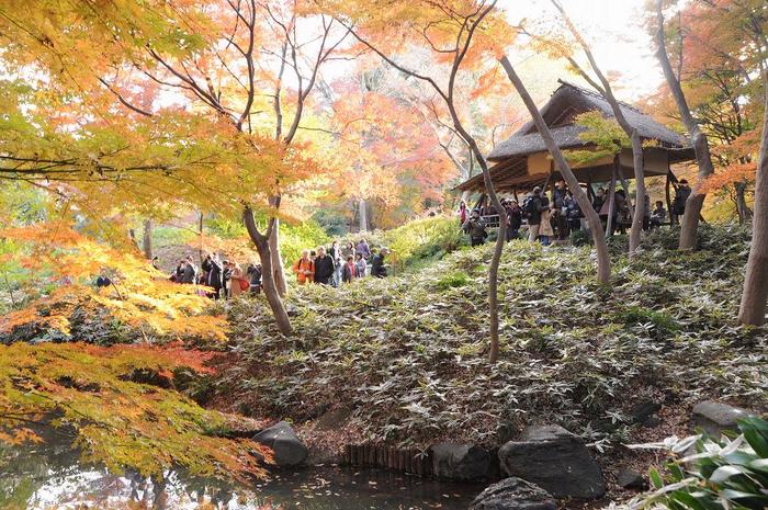 JR山手線の駒込駅から100メートルの交通便利な大名庭園のため、土・日ともなれば大混雑の盛況振りです。