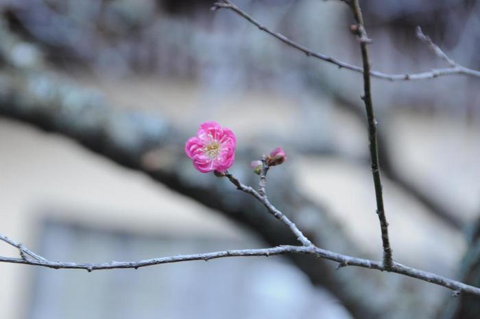 幸にも今回は、紅葉をバックに梅一輪を撮影できた。 |
