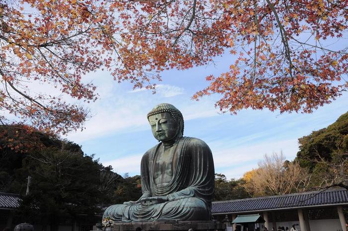赤や黄色のモミジも有り、イチョウも有ったので、大仏さまと紅葉のコラボレーションをして見ました。