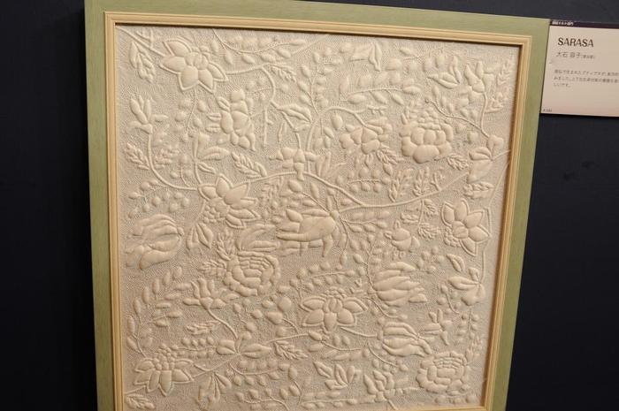 額絵となると、大きさは50センチ四方の作品になるので、ダイナミックさは感じられないが、絵画を見るような感覚でパッチワークを目にする事が出来る。