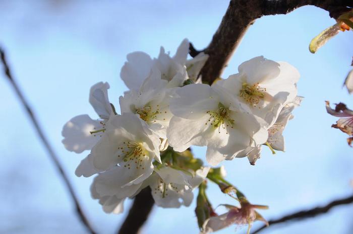 ところで、まつり会場から園内を下ってくると、一番最後の場所に『白い河津桜』が一本ある。