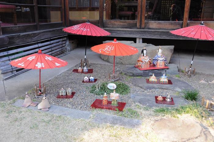 料亭の中庭を利用して、陶器製のお雛様を展示しています。