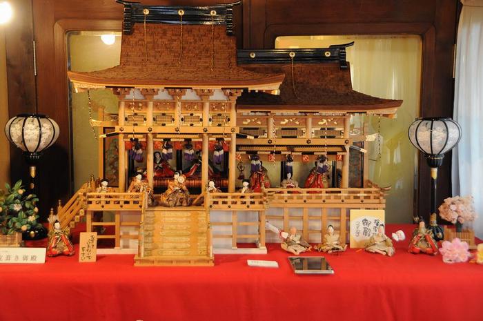 御殿雛飾りは京都で発生し、西国一帯に広まって行きましたが、静岡まで広まってきたところで、江戸文化のお雛様が誕生したため、とうとう、関東に入ってきませんでした。