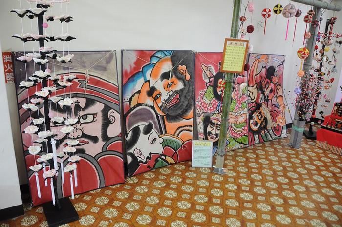 会場内には、段飾りの他に御殿雛、割り箸を使った雛人形、江戸凧絵師の橋本禎造作の「大凧」4枚の展示も良かったが、暖簾風の吊るし飾りは、もっと良かった。