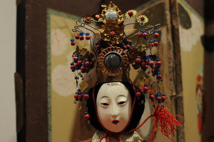 お雛さまは「次郎左衛門雛」、「有職雛」、「古今雛」が20対ほど有ったが、全て「ガラス戸越しの展示」のため、撮影禁止で無くても、カメラは光が入り撮影不可能である。