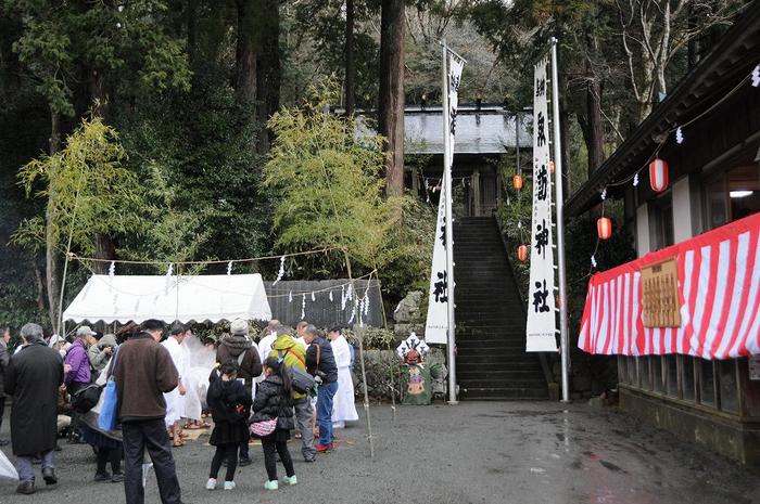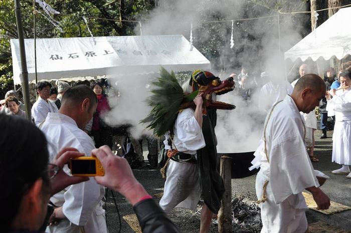 幸いに、祭りの会場の雪は消えていましたが、カメラを持つ手は寒かった。国選択無形民俗文化財・県指定無形民俗文化財で知られる「仙石原湯立獅子舞」 、江戸時代から続く「湯立の行」が斎行されました。