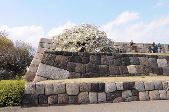 今回は見頃の時期に撮影できましてた。本来ならば石垣の上に建物があれば絵になる光景ですが、江戸城天守閣は徳川時代の初期には存在していたのですが、江戸の下町を焼きつくした「振り袖火事」のもらい火により、焼け落ちてしまい、その後は再建されないままです。
