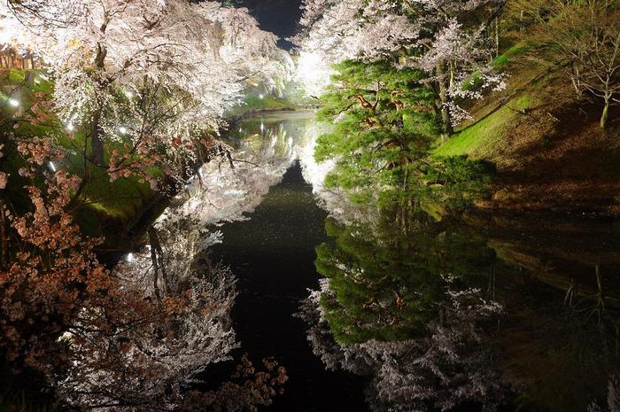 夜桜の主眼は、お濠に映るミラー返しを狙いました。