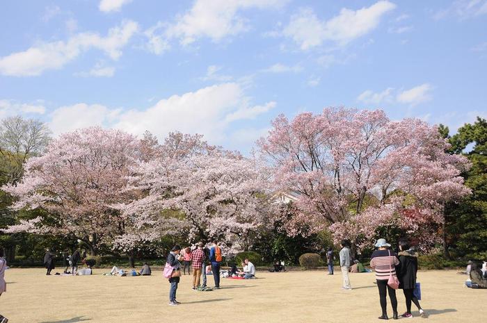 皇居東御苑内の江戸城本丸御殿跡広場は、1週間前には満開であった桜も散りぎわであるが、シダレザクラやウコン桜やギョイコウ桜へとバトンタッチされてきた。
