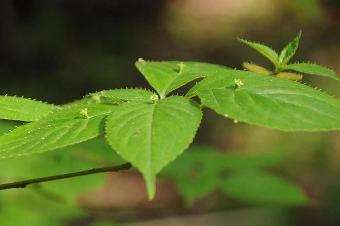花を船頭に、葉を筏に見立ててハナイカダ(花筏)の呼び名になった。