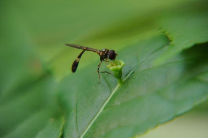 体長12ミリほど、お尻の太さも2ミリほど、姿はトンボのような蜂のような?
