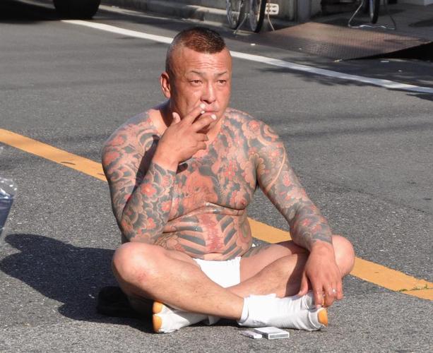 集団のほとんどが、刺青をしている。