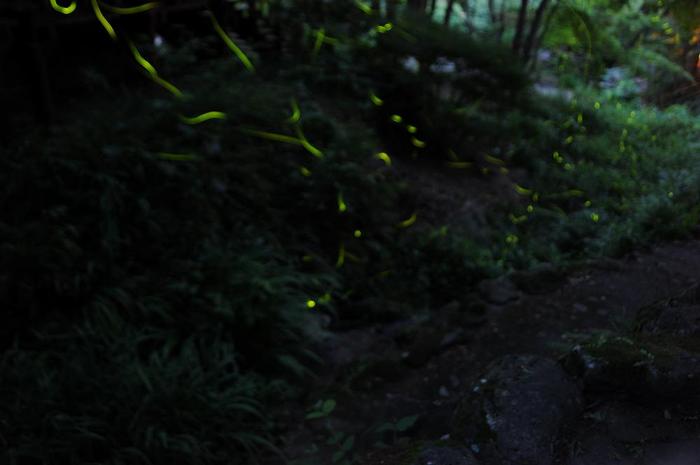 本格的にホタル撮影を目論むものは、それなりのカメラを持参しているが、一般的には、スマホやデジカメで撮影しようとするから、フラッシュ撮影が行なわれるや赤外線で自動距離測定のために赤い光が照射され、長時間露光をしているカメラマン泣かせの光景である。