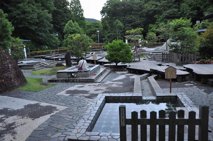 湯河原観光会館の広場を通り抜けると、千歳川に流れ落ちる滝や千歳川の激流を眺めながら、ホタルの鑑賞地までの遊歩道を進み、さらに進むと足湯の「独歩の湯」に辿り着きます。