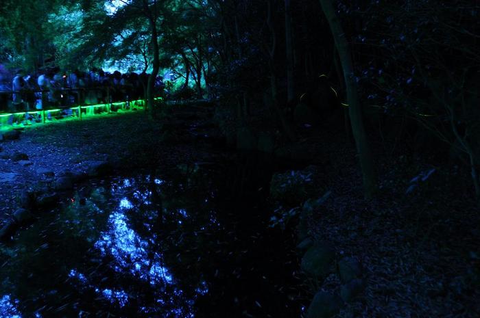 | 4日前(6/6)は、平日だったので、撮影場所は好位置に三脚を立てられたが、今夜は先客が多く、先日の終盤に撮影していた橋の上から水面を飛ぶホタルの撮影から入った。・・・リベンジ撮影でもある。 さて、2日程前から夏日になり、ホタルの羽化も増加している。