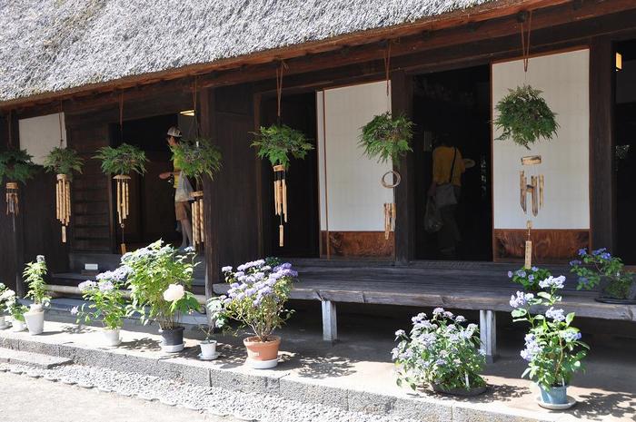 併せて、軒下には「あじさいの盆栽」が、色を添えていました。